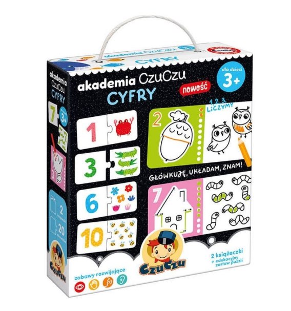 Edukacyjny zestaw zawiera długie książeczki do kolorowania i tematyczny zestaw dwuelementowych puzzli. Urocze ilustracje zainspirują dzieci do mnóstwa różnorodnych zabaw w liczenie i ćwiczeń grafomotorycznych. To świetny sposób na rozwijanie małej motoryki, poznawanie cyfr i nowych pojęć.
