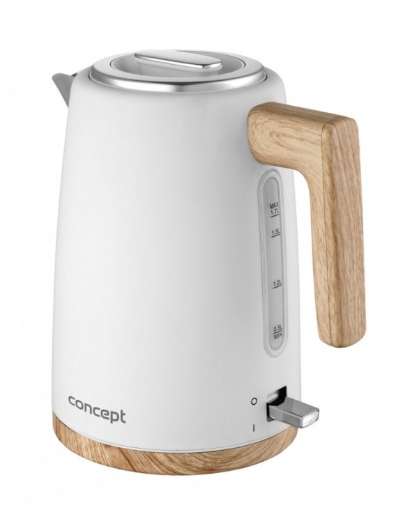 Czajnik elektryczny Concept RK3315 ELWOOD to połączenie nowoczesnego skandynawskiego designu i jakości wykonania. Połączenie stali nierdzewnej z elegancką matową powierzchnią i dodatkami w stylu drewna to nie tylko gwarancja przyjemności estetycznej, ale także wysoka trwałość i jakość. Idealnie pasuje do kuchni nowoczesnych i tradycyjnych. Mieści 1,7 litra wody, z której możesz przygotować aż 7 filiżanek ulubionego napoju.