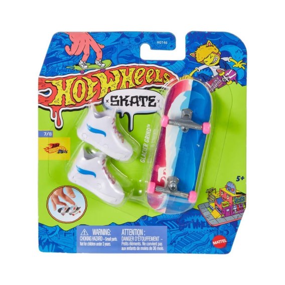 Hot Wheels i legenda skateboardingu, Tony Hawk, połączyli siły, aby stworzyć epicką kolekcję deskorolek do jazdy palcami doskonałą do ćwiczenia nowych sztuczek i niesamowitych tricków. W każdym zestawie jest deskorolka Hot Wheels do jazdy palcami oraz para stylowych zdejmowanych butów deskorolkowych, pomagających utrzymać palce na miejscu podczas rozgrzewających do czerwoności popisów. Nowicjusze mogą nabrać pewności siebie oraz lepiej wyczuć deskę i ruchy, a potem spróbować trudniejszych manewrów już bez butów na palce. Każda deska ma niepowtarzalny wzór, dzięki czemu fani będą chcieli zebrać je wszystkie. Sprzedawane oddzielnie w zależności od dostępności. Kolory i elementy dekoracyjne mogą się różnić.
