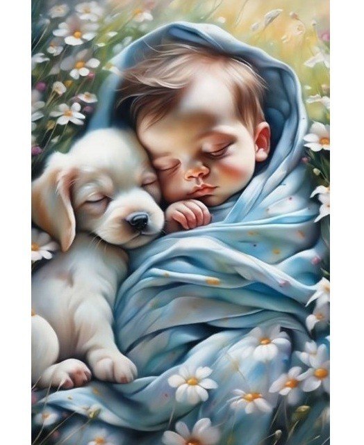 Diamentowa mozaika - Dziecko i szczeniaczek