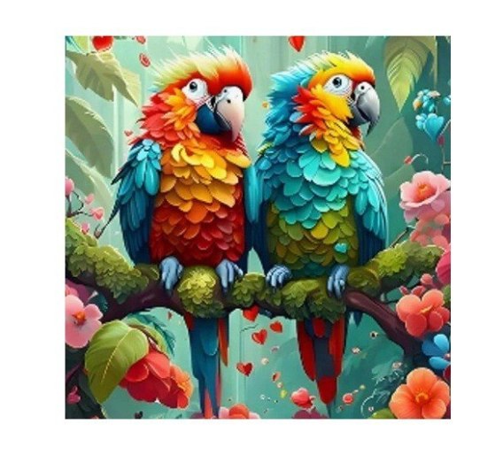 Diamentowa Mozaika Haft Diamentowy Dwie kolorowe papugi na gałęzi 30x40 cm