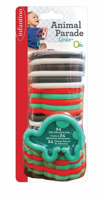 - Gryzczki w kształcie zwierzątek o różnych kolorach i fakturach, które można dowolnie ze sobą łączyć tworząc łańcuch.