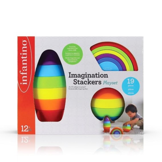 Zestaw 3 zabawek do nakładania i budowania (łącznie 19 elementów):