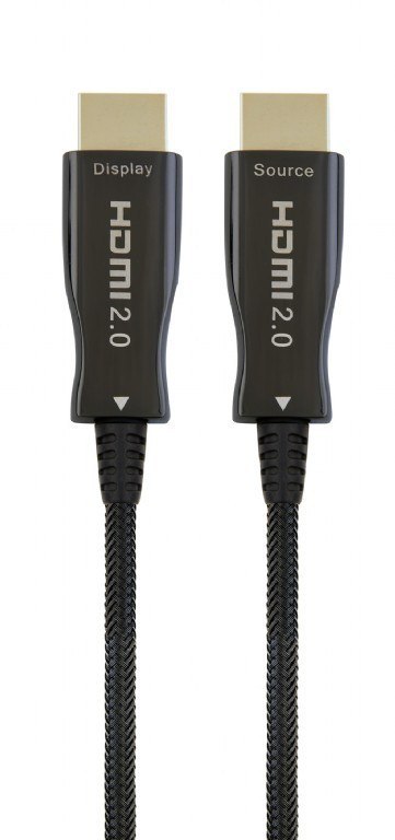 Aktywny kabel optyczny HDMI (AOC) wykorzystuje technologię światłowodową do przesyłania cyfrowego sygnału HDMI. Oznacza to, że sygnał może być przenoszony znacznie dalej niż przy użyciu tradycyjnego kabla miedzianego (do 100 m) i zmniejsza ryzyko zakłóceń EMI / RFI. Kable HDMI AOC mają również dedykowane przewody miedziane w środku, więc nie ma zewnętrznego źródła zasilania.