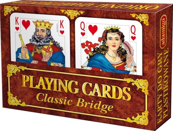Komplet brydżowy to klasyczny zestaw karciany. Gra w karty uczy strategii, a jednocześnie rozwija zdolność logicznego myślenia. Karty wchodzące w skład kompletu, wykonane są starannie i są bardzo trwałe. Gra w karty to ciekawa rozrywka, w którą możesz grać ze znajomymi lub w gronie rodzinnym.