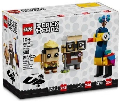 Fani w wieku od 10 lat mogą okazać swoją pasję do filmu Odlot studia Disney i Pixar dzięki zestawowi LEGO BrickHeadz Disney i Pixar Carl, Russell i Kevin (40752). Pełna realistycznych szczegółów figurka Carla ma charakterystyczne okulary, figurka Russella jest ubrana w mundur Synów Dzikiej Przyrody, a figurka Kevina ma niebiesko-żółto-pomarańczowy kolor. Z pomocą figurek z filmu Odlot możesz odtworzyć kultowe sceny lub z dumą ustawić je na półce.