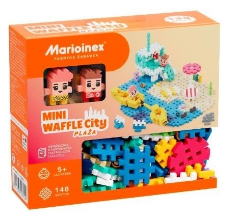 Zbuduj słoneczną plażę, na której znajduje się budka ratownika, leżak dla plażowiczów, bananowa łódź i wiele innych elementów wraz z dwoma oryginalnymi postaciami ratownikiem Mitchem i pływaczką Dianą. Twórz własne historie i wykorzystaj do nich sugestywne detale, jak silne fale lub płetwa rekina, albo rozbuduj swoje Waffle City o podmiejską plażę.