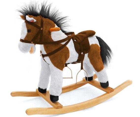 Konik na biegunach Łatek. Wyjątkowy konik na biegunach, każde dziecko marzy o takiej zabawce, oprócz tradycyjnej funkcji bujania, posiada szereg atrakcyjnych opcji, które umilą i uatrakcyjnią zabawę. Konik posiada drewniane bujaki oraz drewniane uchwyty.