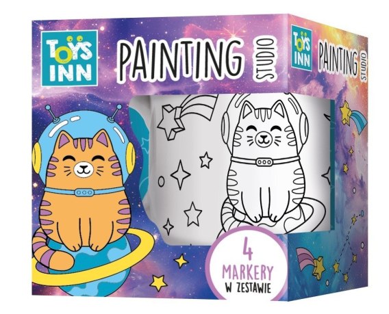 Ceramiczny kubek Kot w Kosmosie do kolorowania od Toys Inn to świetna, kreatywna zabawa. W zestawie znajdują się markery w czterech kolorach: zółtym, różowym, niebieskim, fioletowym. Dzięki nim, każde dziecko, w oryginalny sposób może ozdobić swój kubek. Całość spakowana jest w ozdobne, tekturowe pudełeczko.