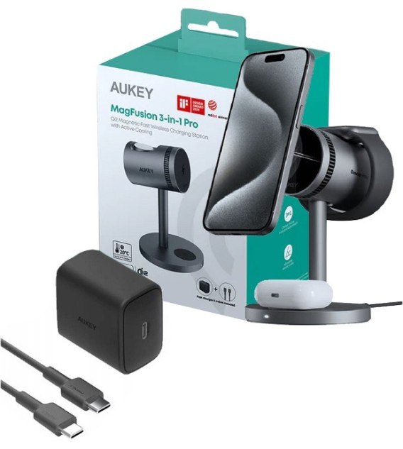 AUKEY LC-MC311A ŁADOWARKA BEZPRZEWODOWA 15W | 3w1 | USB-C | Qi2 (Qi 2.0) z AKTYWNYM CHŁODZENIEM