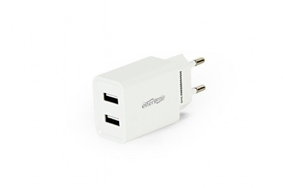 Uniwersalna 2-portowa ładowarka USB, 2,1 A kolor biały EG-U2C2A-03-W