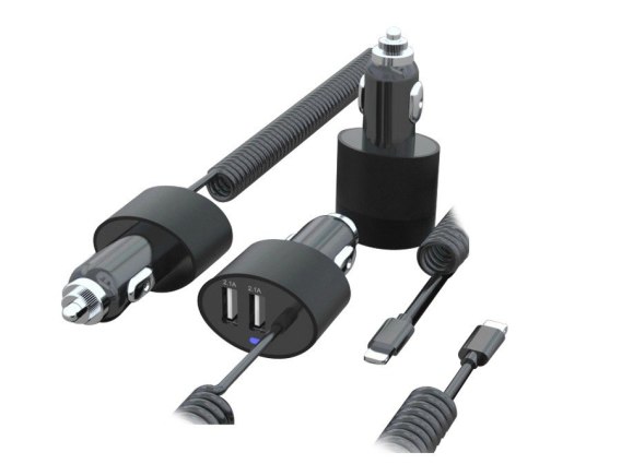 Wysokiej jakości uniwersalna ładowarka samochodowa firmy Maclean charakteryzująca się wysoką wydajnością prądową wynoszącą aż 5,2A. Ładowarka Lightning o natężeniu prądu 1A posiada dwa dodatkowe wejścia USB o natężeniu prądu 2,1A każde, pozwalające podłączyć dowolny kabel.