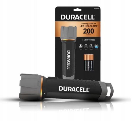 Niezatapialna Latarka Durecell 200 została zaprojektowana tak, aby wytrzymać żywioł wody. Funkcja automatycznego włączania światła w momencie dotknięcia wody ułatwi jej zlokaliowanie.