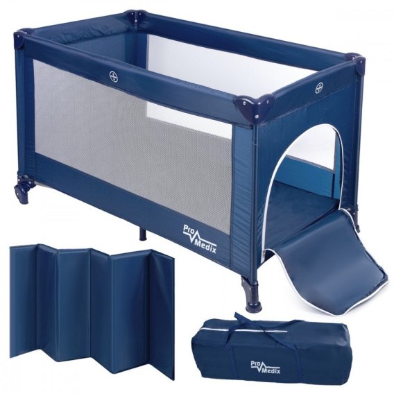 Łóżeczko turystyczne Promedix, 125x65x74cm, niebieskie, kółka, pokrowiec ochronny, PR-803 B