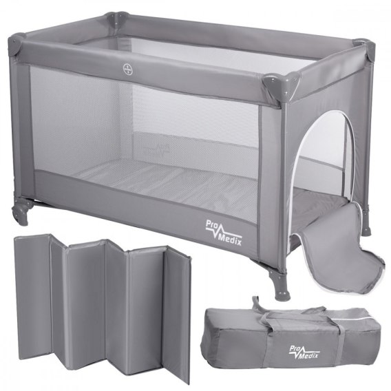 Łóżeczko turystyczne Promedix, 125x65x74cm, szare, kółka, pokrowiec ochronny, PR-803 G