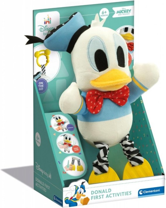 Kaczor Donald w postaci milutkiego pluszaka z funkcjami przygotowanymi dla najmłodszych użytkowników, pełen kolorów rozbudzających ciekawość i spostrzegawczość.