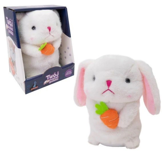 Ta urocza pluszowa maskotka dzięki wbudowanemu mechanizmowi, dokładnie powtórzy to co do niego powiesz na swój zabawny króliczy sposób.