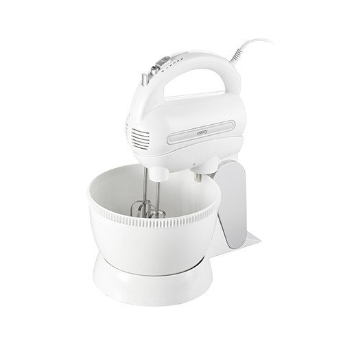 Poręczny mikser kuchenny o mocy 600 W. Niezbędny dla każdej osoby, która piecze ciasta i ciasteczka. Pozwala na wykorzystanie 5 różnych prędkości, w zależności od rodzaju przygotowywanej potrawy. Dzięki temu nadaje się zarówno do mieszania mąki z innymi składnikami, jak i do ubijania jajek, kremów, bitej śmietany. W razie potrzeby można też użyć funkcji Turbo. Robot jest praktyczny i wytrzymały, dzięki czemu można go używać przez długi okres czasu bez ryzyka awarii. Obrotowa misa z napędem nie wymaga od użytkownika trzymania robota w ręku, co sprawia że robot jest wygodniejszy od standardowych modeli.