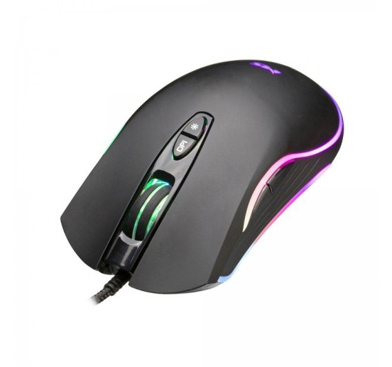 Ta bestia charakteryzuje się nie tylko atrakcyjnym wyglądem, ergonomicznym kształtem, podświetleniem LED RGB, 7 programowanymi przyciskami, efektownym czarnym kolorem, ale także konkretnym czujnikiem optycznym o zakresie od 800 do 6400 dpi.