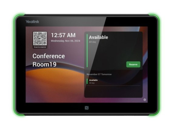 Yealink RoomPanel E2 to 8-calowy panel harmonogramu sali konferencyjnej typu "wszystko w jednym", który działa pod kontrolą systemu Android 13 i jest wyposażony w pełne programowalne podświetlenie tła LED RGB, które zapewnia natychmiast widoczną komunikację o stanie pomieszczenia. Obejmuje funkcję wielopunktowego dotyku, Wi-Fi 802.11ac, Bluetooth 5.0, wbudowany czytnik NFC/RFID, ulepszone układy mikrofonów i głośniki, aby spełnić wszystkie wymagania nowoczesnego miejsca pracy. Wyposażony również w Power-over-Ethernet i różne wsporniki montażowe, Yealink RoomPanel E2 można łatwo zamontować na dowolnej powierzchni.