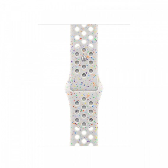 Pasek sportowy Nike jest mocny i wytrzymały, a jednocześnie zaskakująco miękki. Jego przewiewność zwiększają specjalnie wytłoczone otwory. Kolorowe płatki ułożone w losowe wzory nadają każdemu paskowi niepowtarzalny wygląd. Gładki, zwarty materiał jest przyjemny w dotyku i elegancko oplata nadgarstek. A napa w nowym aluminiowym zapięciu z napą i szlufką ma teraz matowe wykończenie.