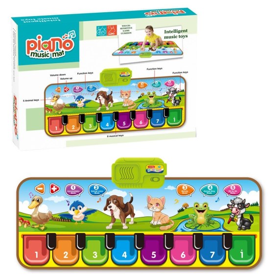 Odgłosy zwierząt, dźwięki klawiszy pianina, melodie, śpiewające zwierzęta, bity.