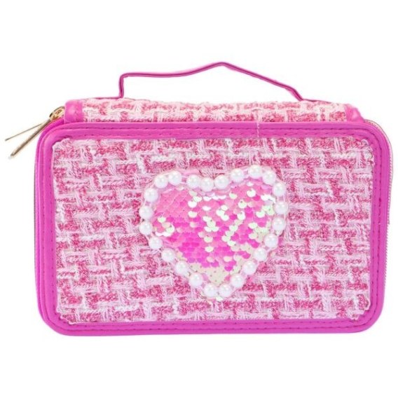 Stylowy piórnik Girabrilla wykonany jest z modnej tweedowej tkaniny, to doskonały wybór dla każdej dziewczynki, która lubi łączyć modę z praktycznością. Perłowe zdobienia i połyskujące serduszko nadają mu wyjątkowego charakteru. Piórnik posiada 3 pojemne przegrody - zapewniają idealny porządek i łatwy dostęp do wszystkich przyborów szkolnych. W środku znajdziesz wszystko, czego potrzebujesz do nauki: kredki i pisaki w pięknych kolorach,ołówek, długopis i temperówkę, gumkę do ścierania i linijkę.