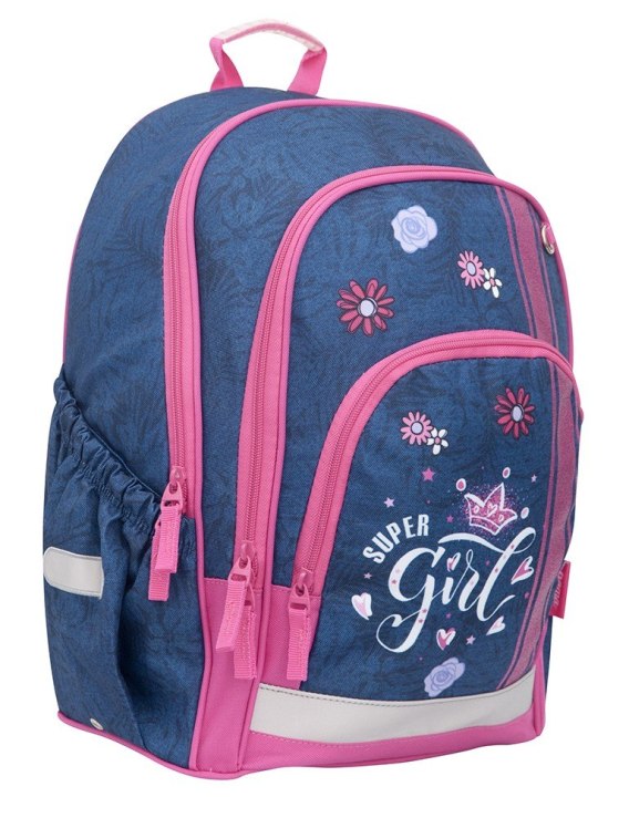 Mimo małej wagi plecak jest bardzo pojemny. Trzy kieszenie główne oraz dodatkowe dwie boczne pozwolą nie tylko spakować wszystkie potrzebne rzeczy, ale również odpowiednio je rozmieścić, by uczeń mógł szybko znaleźć właściwy przedmiot i szybko przygotować się do lekcji.