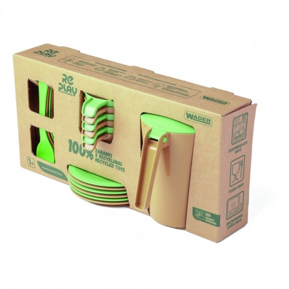 Zestaw do kawy Morning z serii RePlay to niezastąpiona zabawka dla każdego dziecka, które lubi bawić się w odgrywanie ról. Idealnie nadaje się na kameralne spotkanie na kawę dla 6 osób, a mała gospodyni będzie mogła w zabawny sposób nauczyć się zasad etykiety i nakrycia stołu. Zestaw składa się z 19 elementów: dzbanka, 6 filiżanek, 6 talerzyków, 6 łyżeczek, elementy zestawu są w kolorach jasnożółtym i pomarańczowym, zapakowane w piękne pudełko kraftowe. Zestaw jest starannie wykończony i bezpieczny w użytkowaniu naczynia są dopuszczone do kontaktu z żywnością, można używać ich w kuchence mikrofalowej i myć w zmywarce.