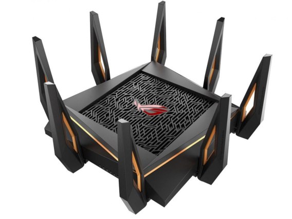 Trzyzakresowy router gamingowy typu AX11000 pracujący w standardzie Wi-Fi 6 (802.11ax) Pierwszy na świecie router Wi-Fi klasy 10-gigabitowej, wyposażony w czterordzeniowy procesor, gniazdo gamingowe 2.5G, funkcję DFS, wtfast, Adaptive QoS, AiMesh do systemów bezprzewodowych typu mesh oraz pakiet zabezpieczeń sieciowych AiProtection Pro.