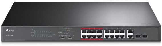 • 16 portów RJ45 PoE+ 10/100Mb/s, 2 gigabitowe porty RJ45 i 2 gigabitowe gniazda combo SFP