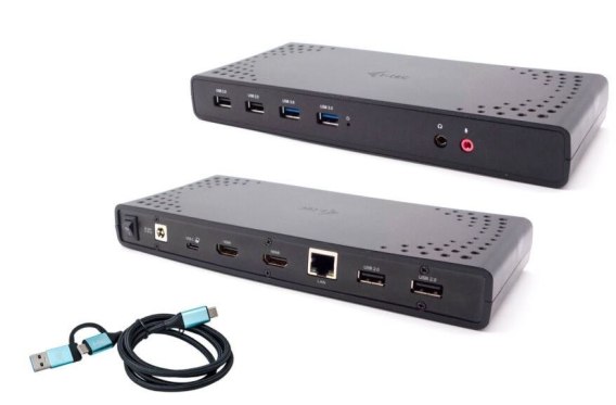 - Uniwersalna stacja dokująca, kompatybilna z laptopami i tabletami ze złączami USB-C, USB-A i Thunderbolt.