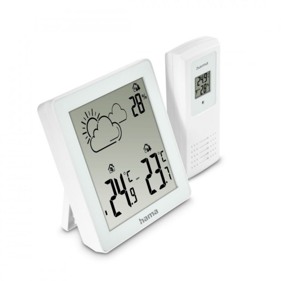 Do wyświetlania temperatury wewnętrznej i zewnętrznej oraz wilgotności otoczenia wewnątrz lub na zewnątrz za pomocą 4 symboli pogodowych