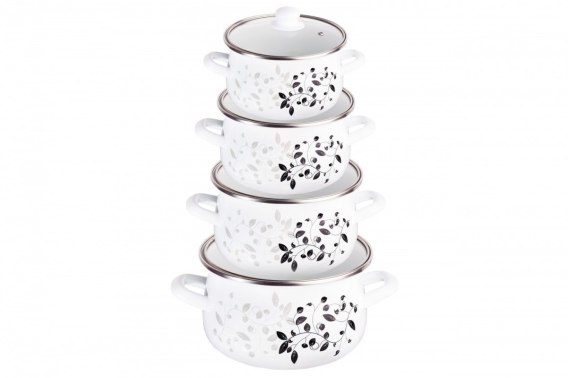 Zestaw garnków 8 elementów Emaila Gałązka DO-5012