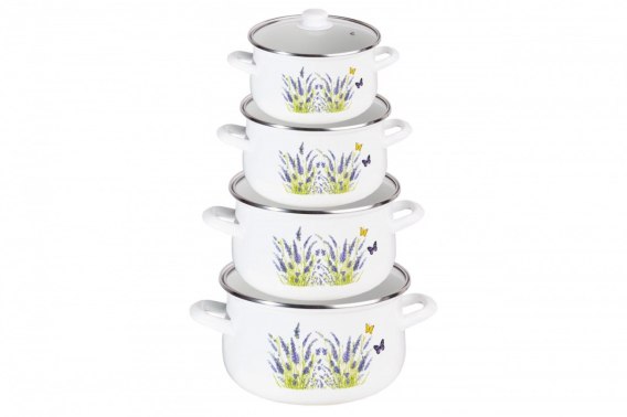 Zestaw garnków 8 elementów Emalia Lawenda DO-5005
